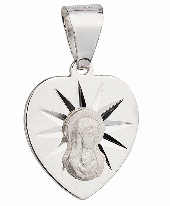 ➡️ Medalik Srebrny z Wizerunkiem Matki Boskiej z Dzieciątkiem w Sercu pr 925