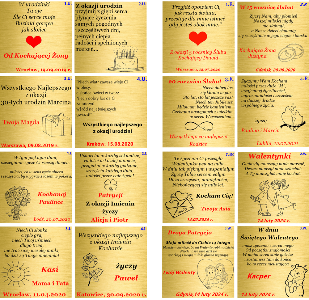 Podaj, który numer projektu wybierasz oraz dane do wpisania w miejsca oznaczone na czerwono. Aby otrzymać spersonalizowaną tabliczkę prosimy o informacje np:
