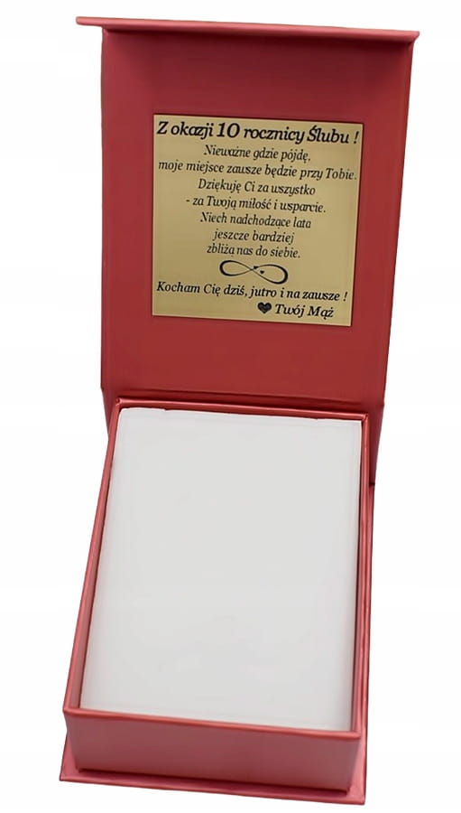 Aby prezent nie odszedł w zapomnienie, na życzenie wykonamy dedykację na tabliczce umieszczonej wewnątrz eleganckiego pudełeczka.
