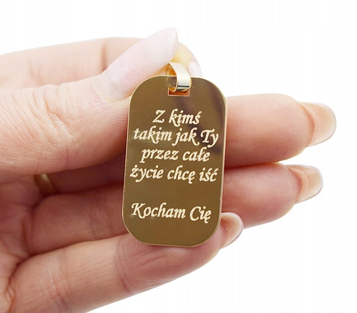 Tekst lub grafikę do wygrawerowania na Nieśmiertelniku proszę podać po przejściu do koszyka w zakładce DODATKOWE UWAGI