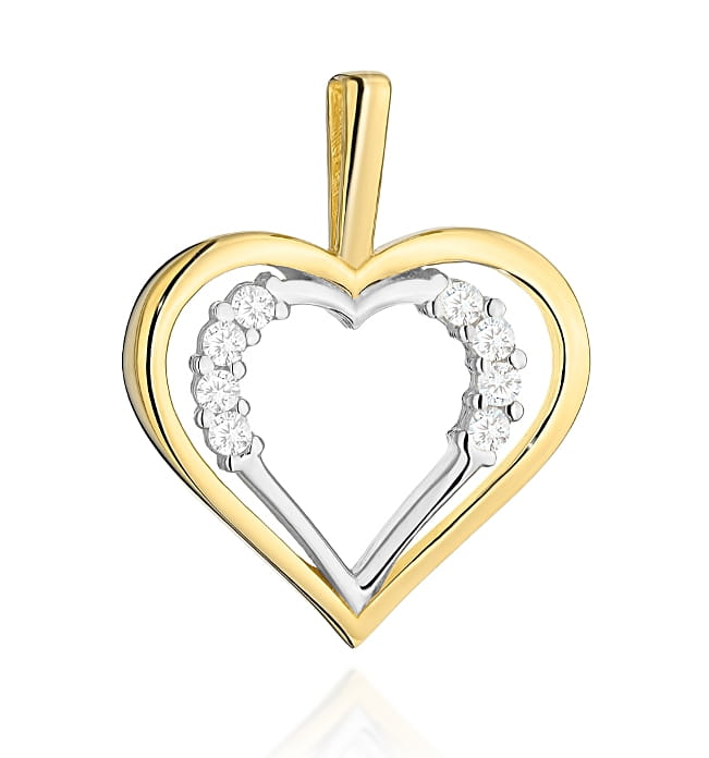 ➡️ Zawieszka Złota Dwa Serca i Cyrkonie w Dwóch Kolorach Złota pr 585