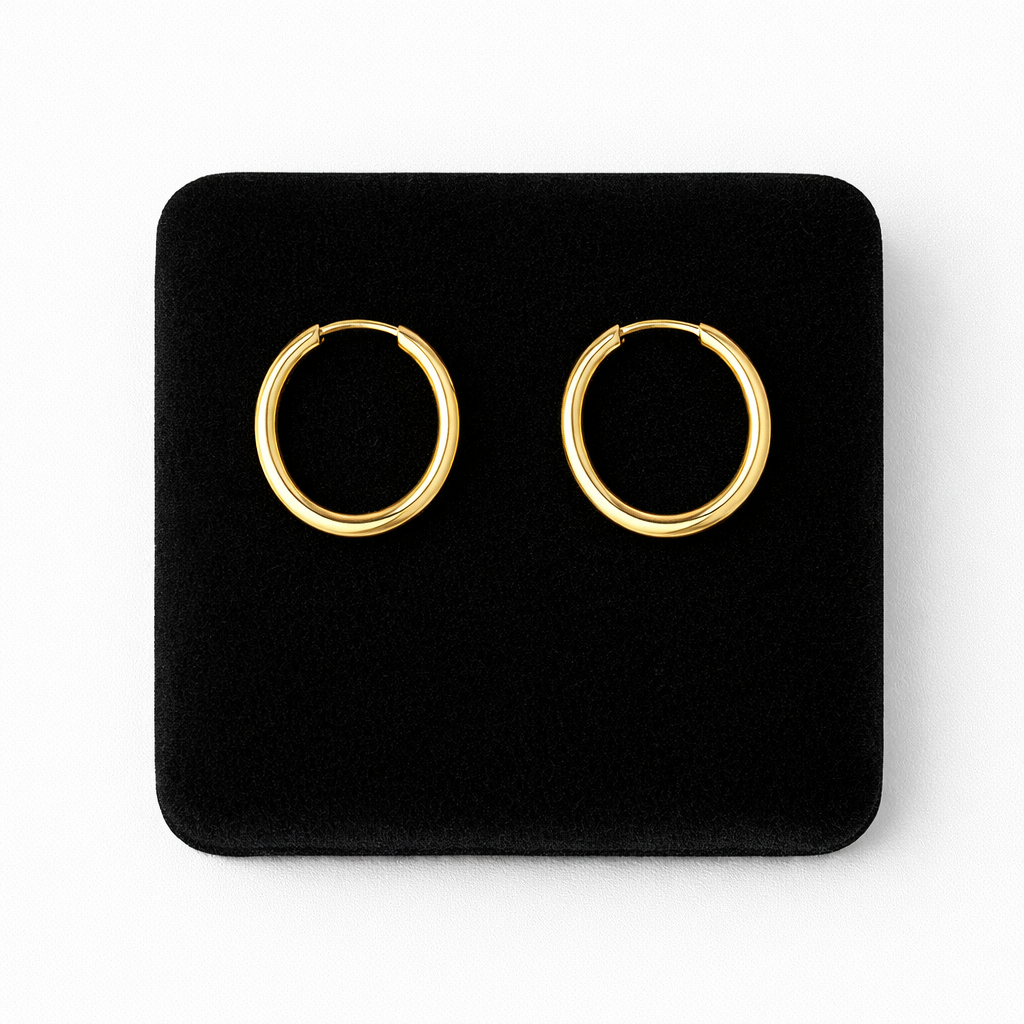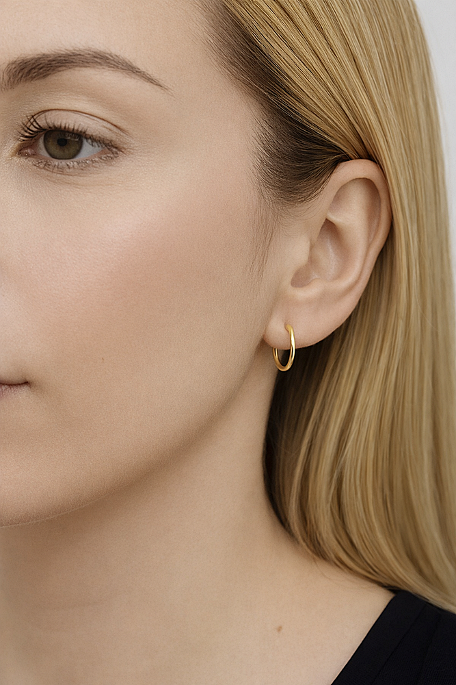 Dodaj subtelnego blasku do swojej stylizacji dzięki ponadczasowym kolczykom w formie złotych kółek. To minimalistyczny, a zarazem niezwykle stylowy dodatek, który pasuje zarówno na co dzień, jak i na wyjątkowe okazje.