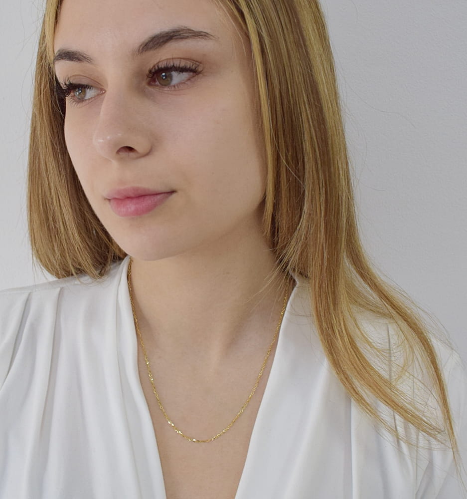 Przedstawiamy państwu stylowy i elegancki naszyjnik o splocie Rolo wykonany ze złota próby 585. Jego okrągłe ogniwa tworzą subtelny, klasyczny wzór o idealnym połysku, dodając biżuterii niepowtarzalnego uroku.