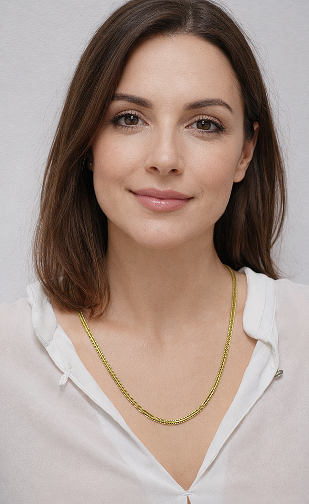 Delikatnie zaokrąglony profil sprawia, że łańcuszek pięknie układa się na szyi i subtelnie odbija światło, podkreślając kobiecą elegancję. Solidne zapięcie typu karabińczyk zapewnia bezpieczeństwo i komfort noszenia na co dzień.