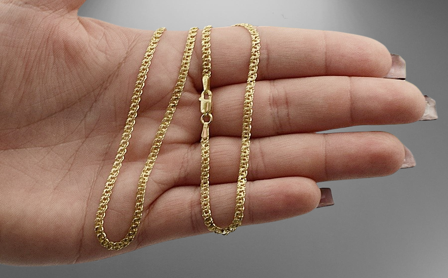 Łańcuszek został starannie wypolerowany, dzięki czemu pięknie odbija światło i podkreśla szlachetny kolor złota.