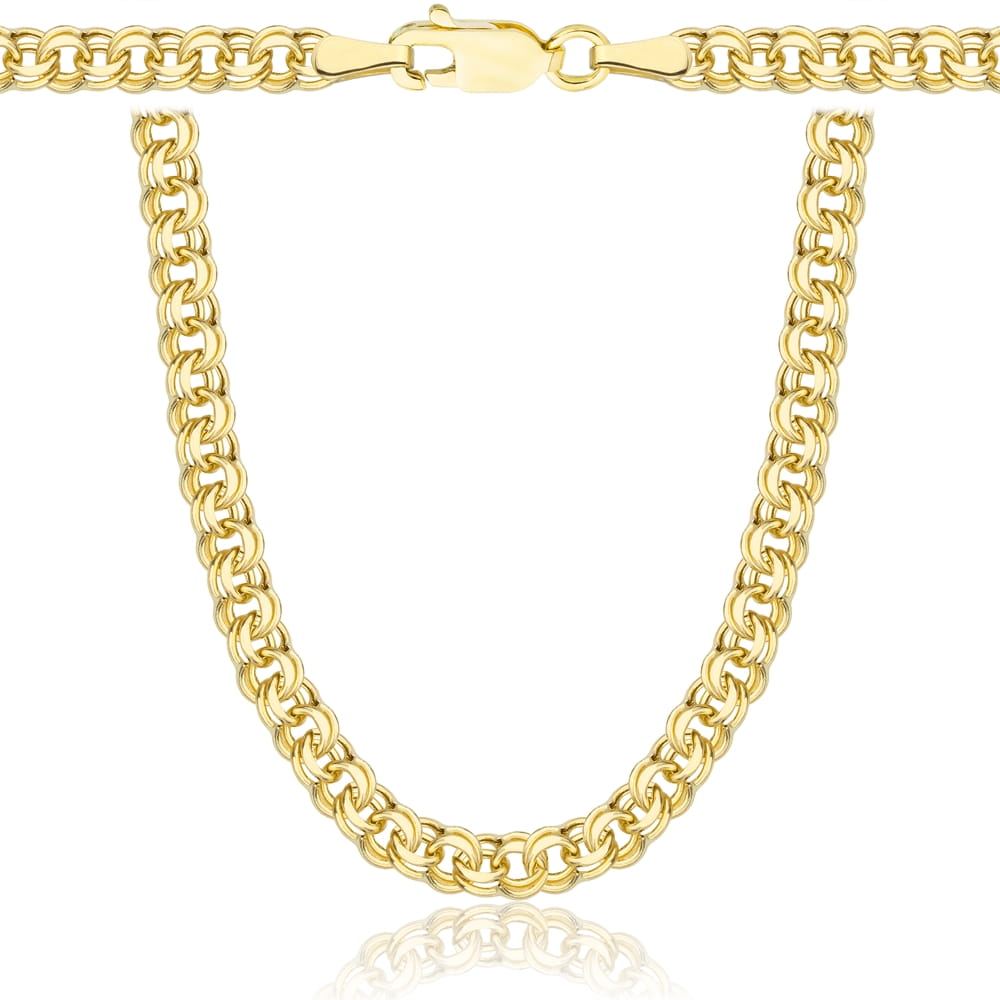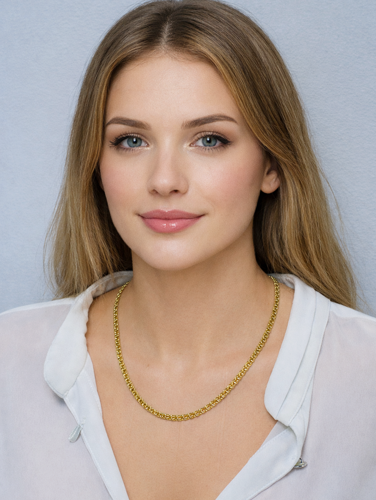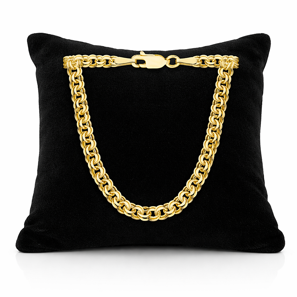 Elegancki złoty łańcuszek wykonany z wysokiej jakości złota próby 585, o klasycznym i ponadczasowym splocie Garibaldka. Charakteryzuje się efektownym, podwójnym splotem ogniw, który nadaje biżuterii wyjątkowego połysku oraz solidności. Dzięki swojej formie łańcuszek pięknie układa się na szyi i doskonale prezentuje się zarówno noszony samodzielnie, jak i z zawieszką.
