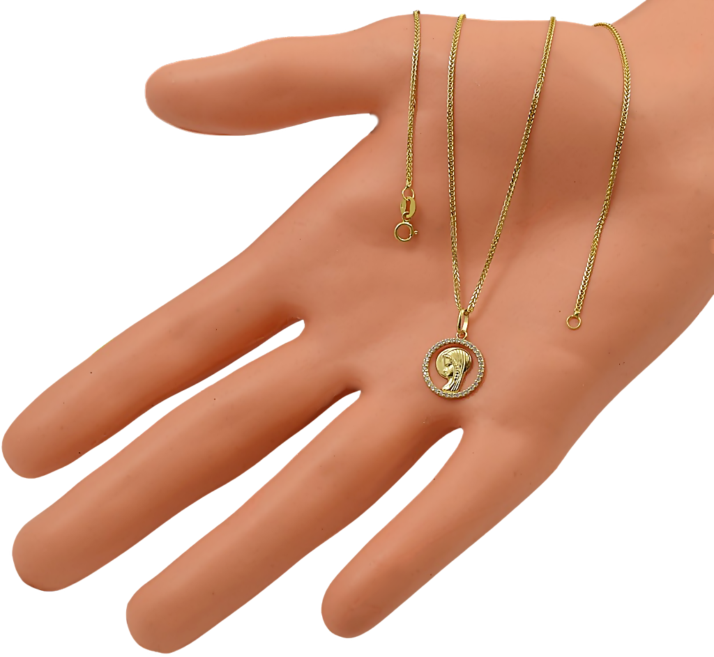 Łańcuszek jak i wisiorek wykonany w całości ze złota próby 585 (14 karatowego)