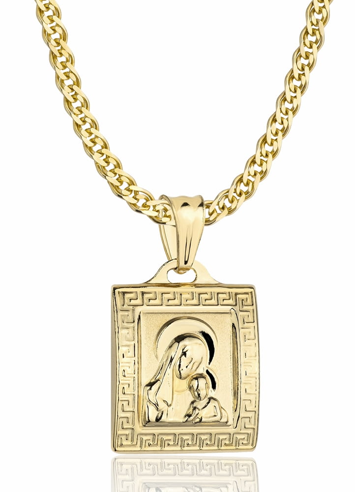 Elegancki złoty łańcuszek wykonany z pełnego złota próby 585, o wyjątkowym splocie Monaliza, który charakteryzuje się gęstym, efektownym ułożeniem ogniw i pięknym połyskiem. W zestawie znajduje się stylowy medalik z wizerunkiem Matki Boskiej z Dzieciątkiem, nadający całości klasycznego i symbolicznego charakteru.