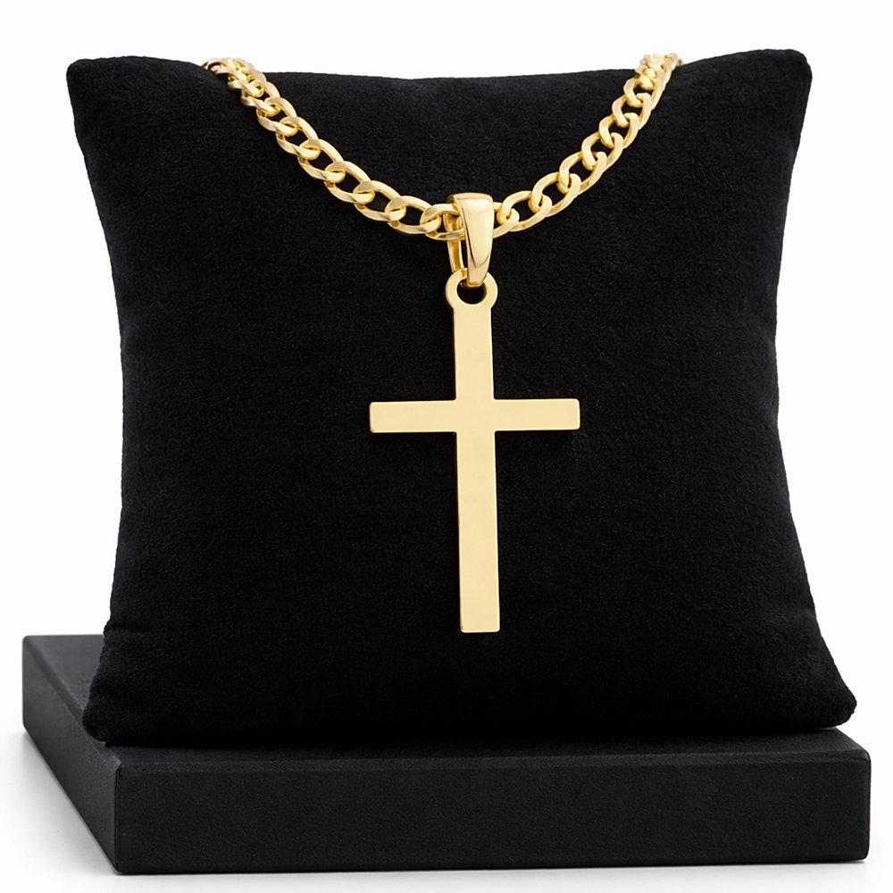 W komplecie znajduje się stylowy krzyżyk wykonany ze złota próby 585, który podkreśla elegancję i ponadczasowy charakter biżuterii. Minimalistyczna forma krzyżyka sprawia, że zestaw pasuje zarówno do codziennych stylizacji, jak i na wyjątkowe okazje.