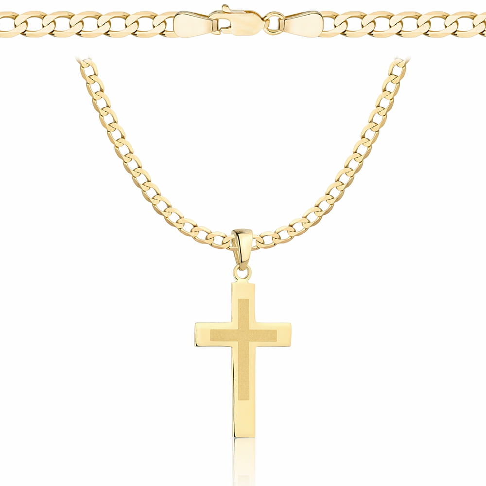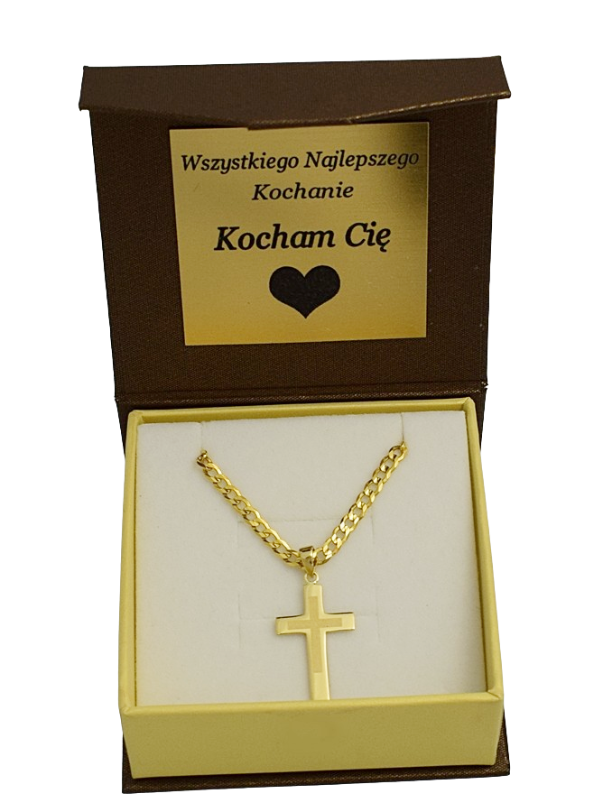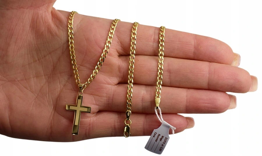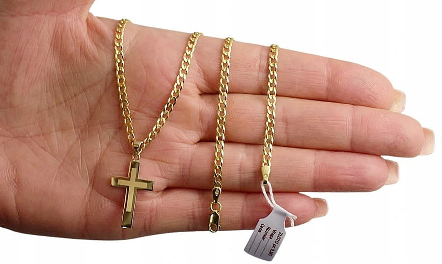 Elegancki złoty łańcuszek wykonany z wysokiej jakości złota próby 585, ozdobiony klasycznym krzyżykiem o subtelnym, ponadczasowym designie. Łańcuszek posiada diamentowane ogniwa, dzięki czemu pięknie odbija światło i nadaje biżuterii wyjątkowy blask.