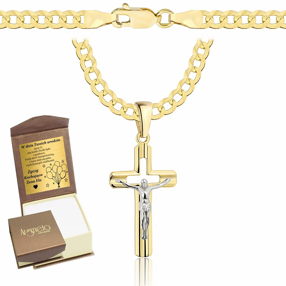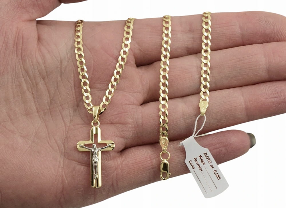 Przedstawiamy państwu stylowy i elegancki łańcuszek o splocie Pancerka w komplecie z Krzyżykiem. Produkt został wykonany z najwyższej jakości złota próby 585 . Ten model naszyjnika z pewnością doceni każdy mężczyzna.