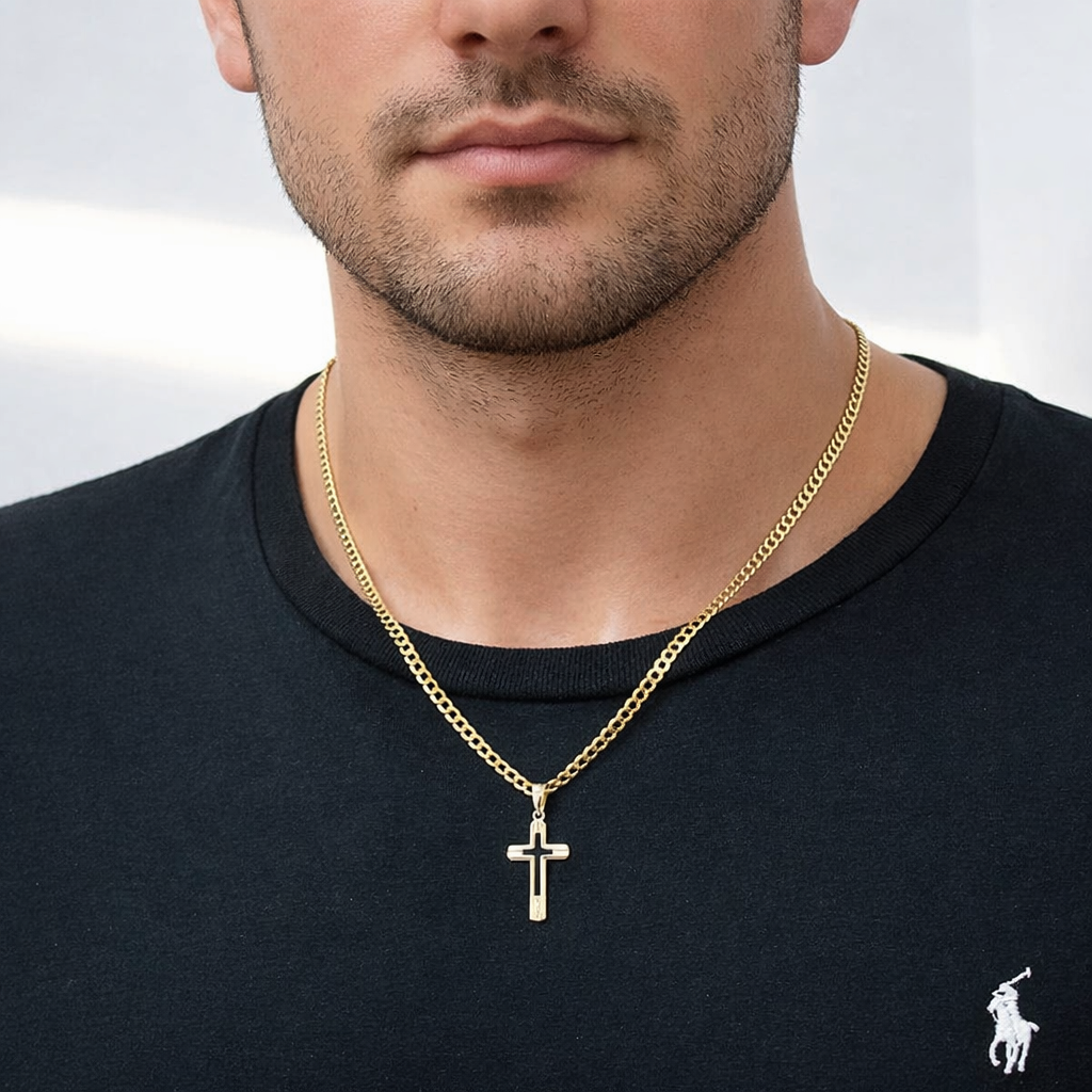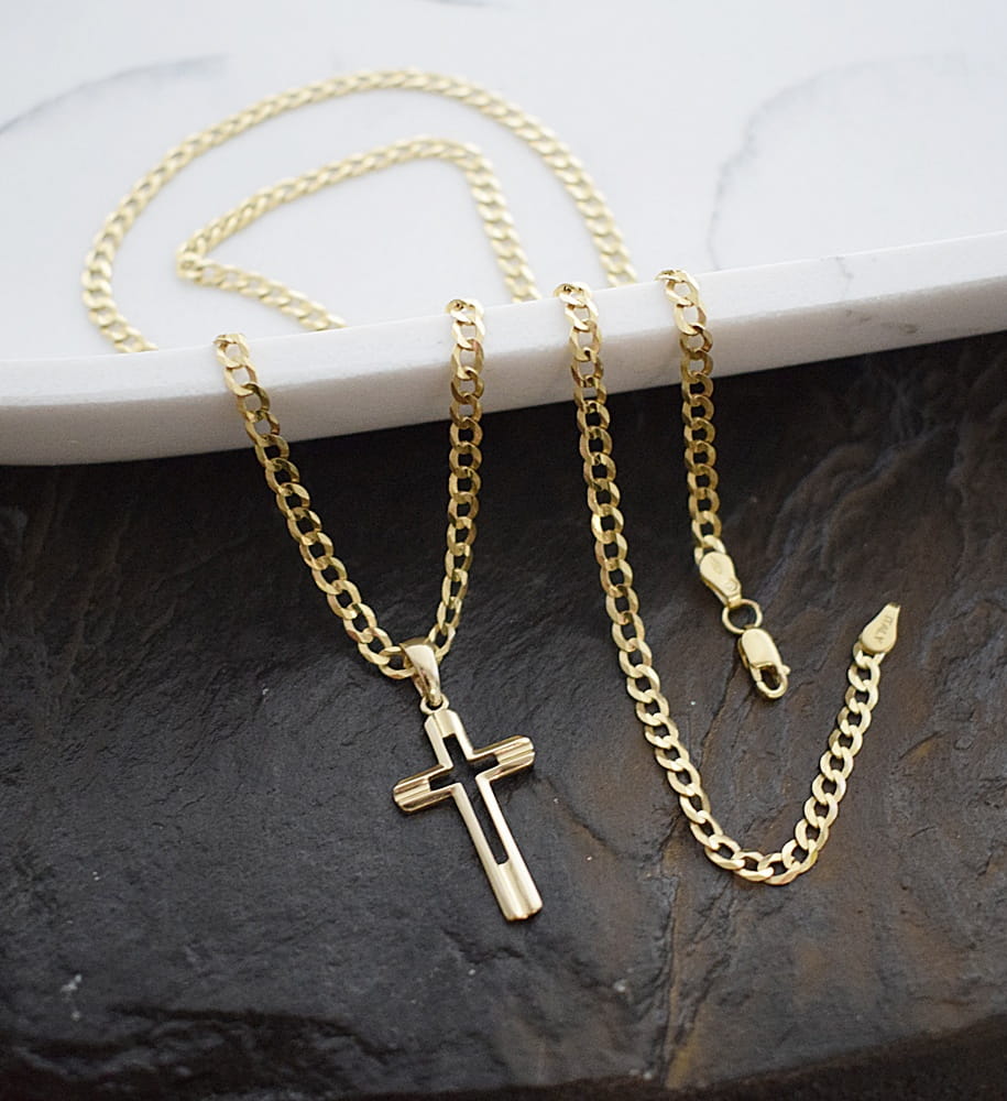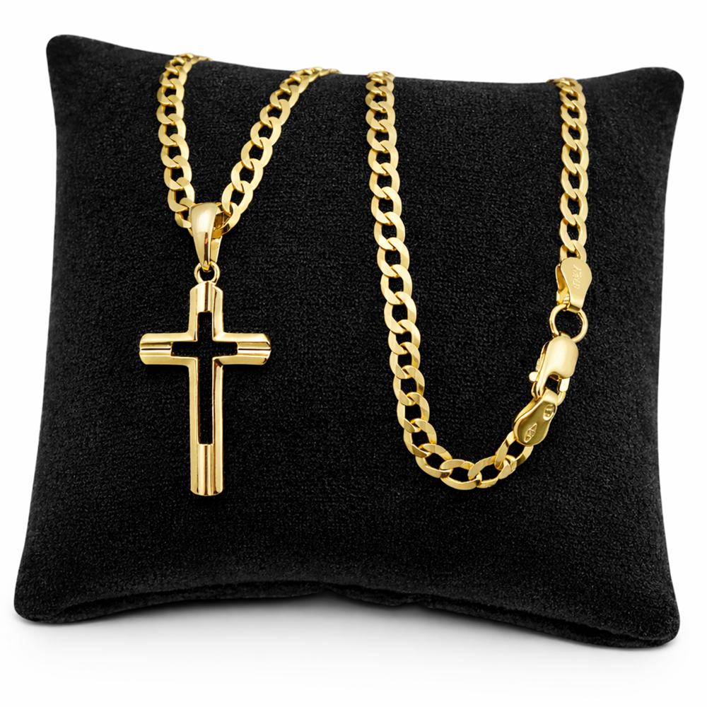 Przedstawiamy państwu stylowy i elegancki łańcuszek o splocie Pancerka w komplecie z krzyżykiem. Produkt został wykonany z najwyższej jakości złota próby 585 . Ten model łańcuszka z pewnością doceni każdy mężczyzna.