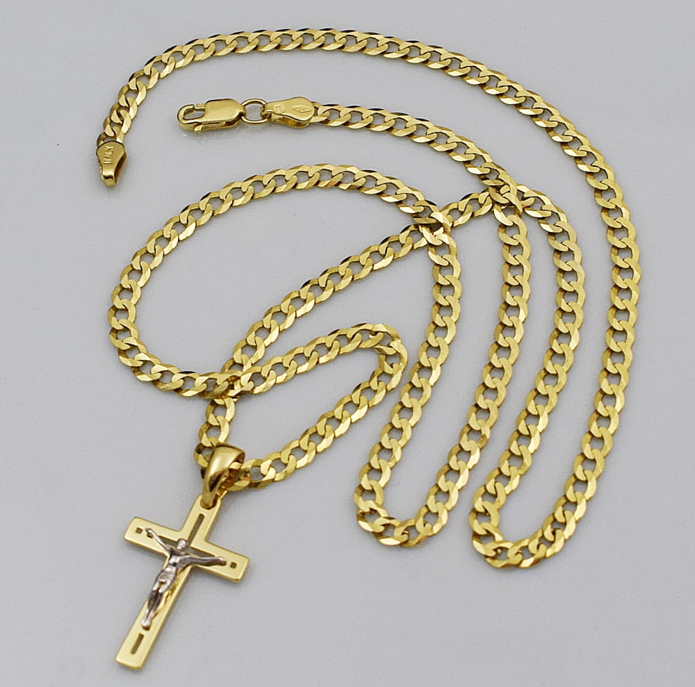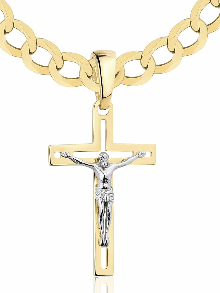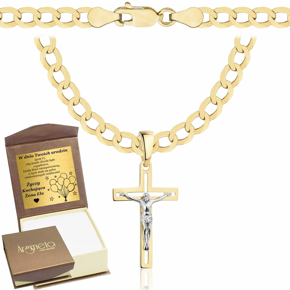 Przedstawiamy państwu stylowy i elegancki łańcuszek o splocie Pancerka w komplecie z Krzyżykiem. Produkt został wykonany z najwyższej jakości złota próby 585 . Ten model naszyjnika z pewnością doceni każdy mężczyzna.