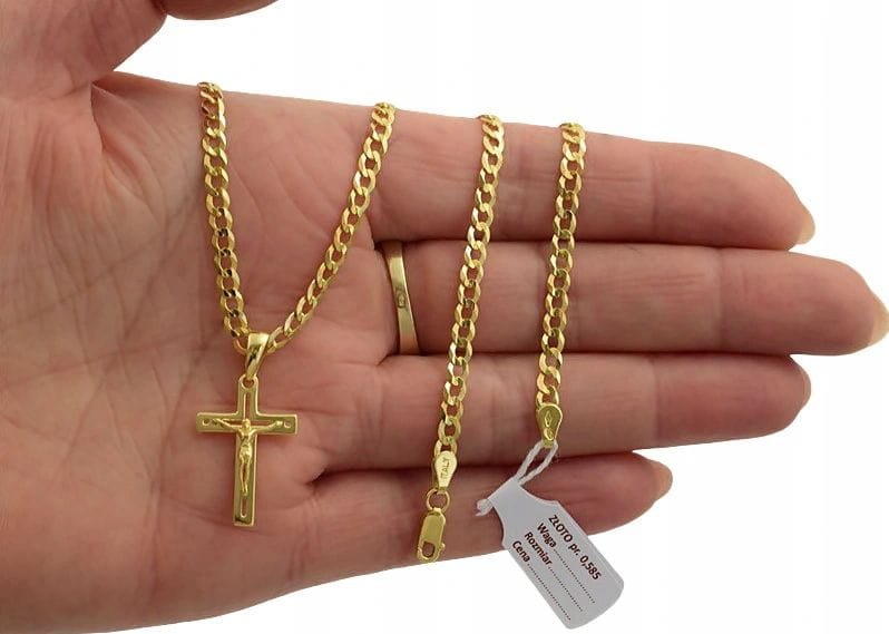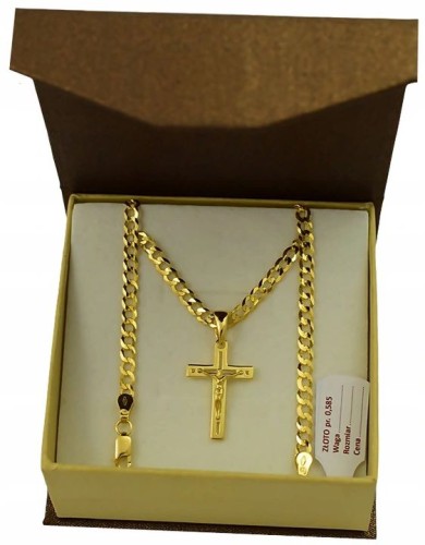 Przedstawiamy państwu stylowy i elegancki łańcuszek o splocie Pancerka w komplecie z Krzyżykiem. Produkt został wykonany z najwyższej jakości złota próby 585 . Ten model naszyjnika z pewnością doceni każdy mężczyzna.