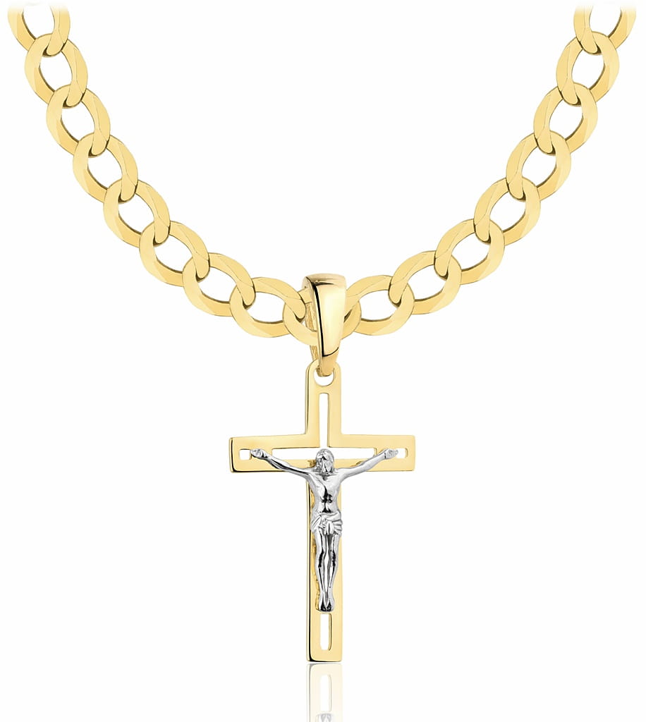 Przedstawiamy państwu stylowy i elegancki łańcuszek o splocie Pancerka w komplecie z Krzyżykiem. Produkt został wykonany z najwyższej jakości złota próby 585 . Ten model naszyjnika z pewnością doceni każdy mężczyzna.