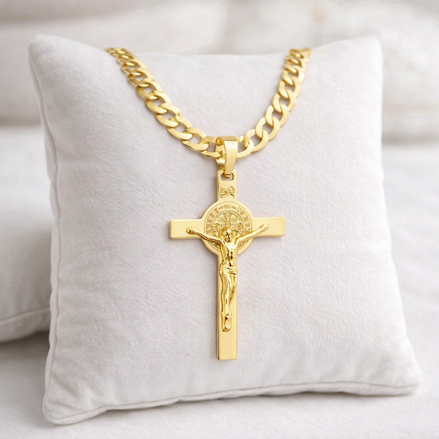Krzyż Benedyktyński to symbol ochrony, wiary i duchowej siły, ceniony od wieków. Całość prezentuje się bardzo efektownie i klasycznie — doskonały wybór na prezent.
