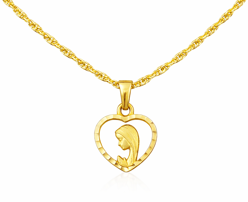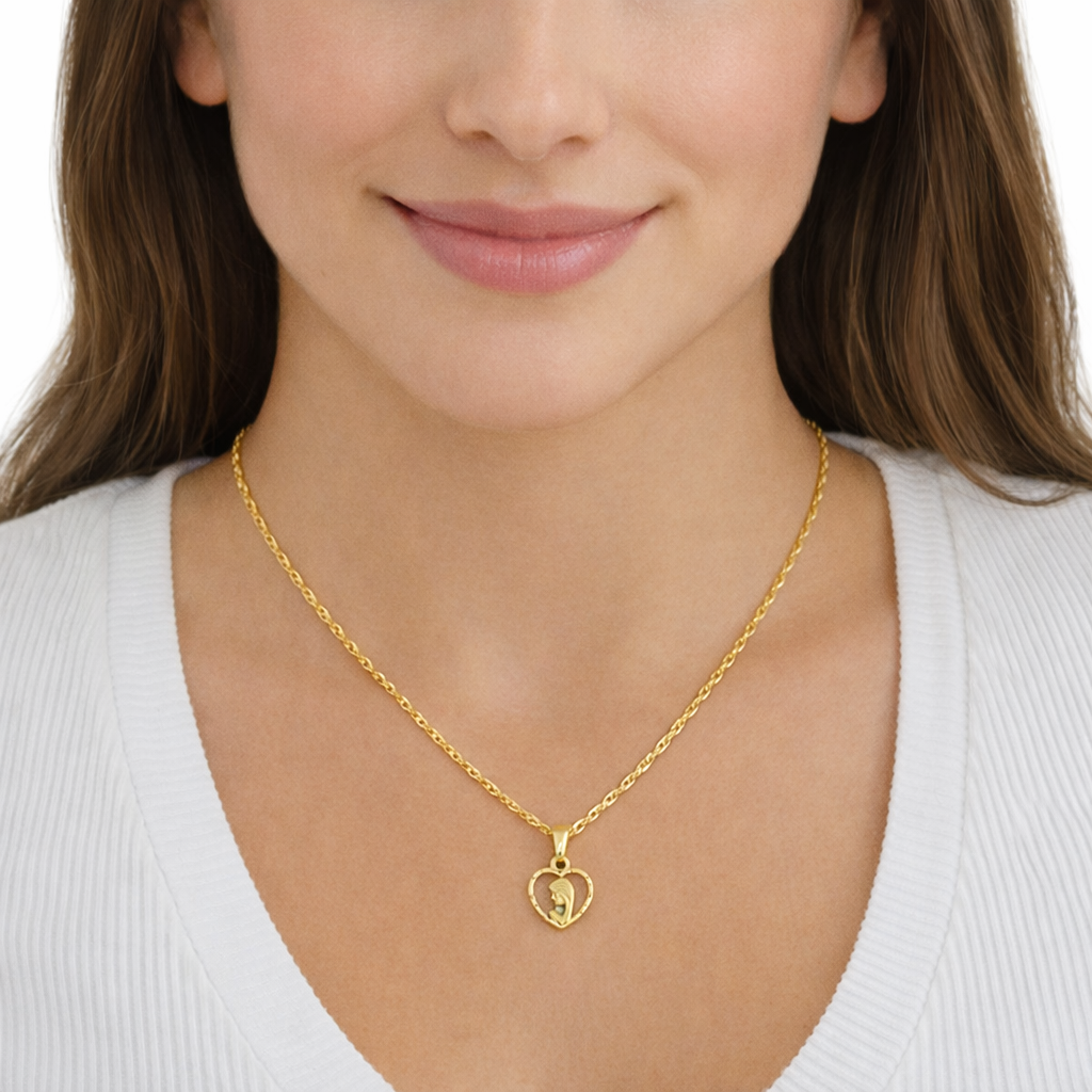 Złoty łańcuszek Singapore z medalikiem – Matka Boska w sercu