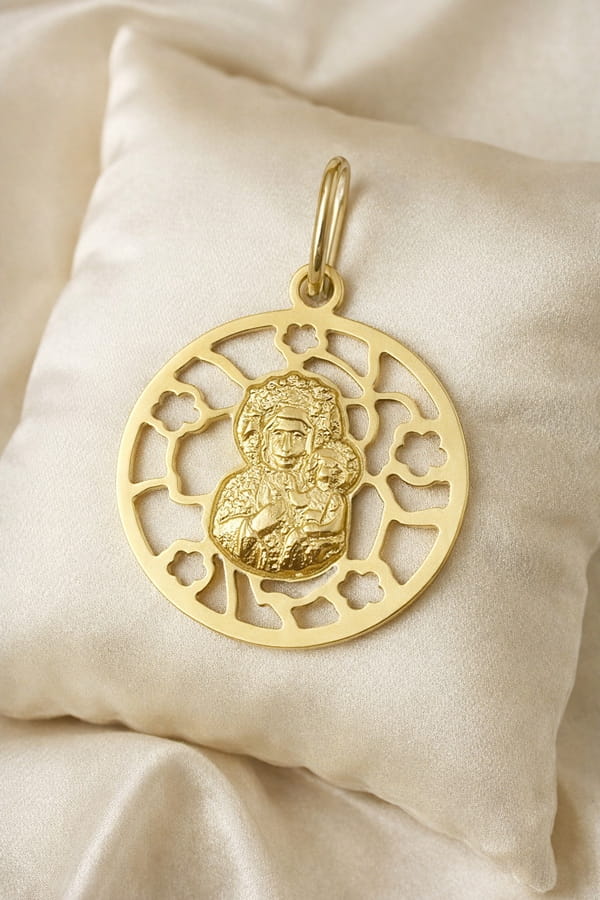 ➡️ Medalik Złoty Ażurowy Okrągły z Matką Boską Częstochowską pr 585