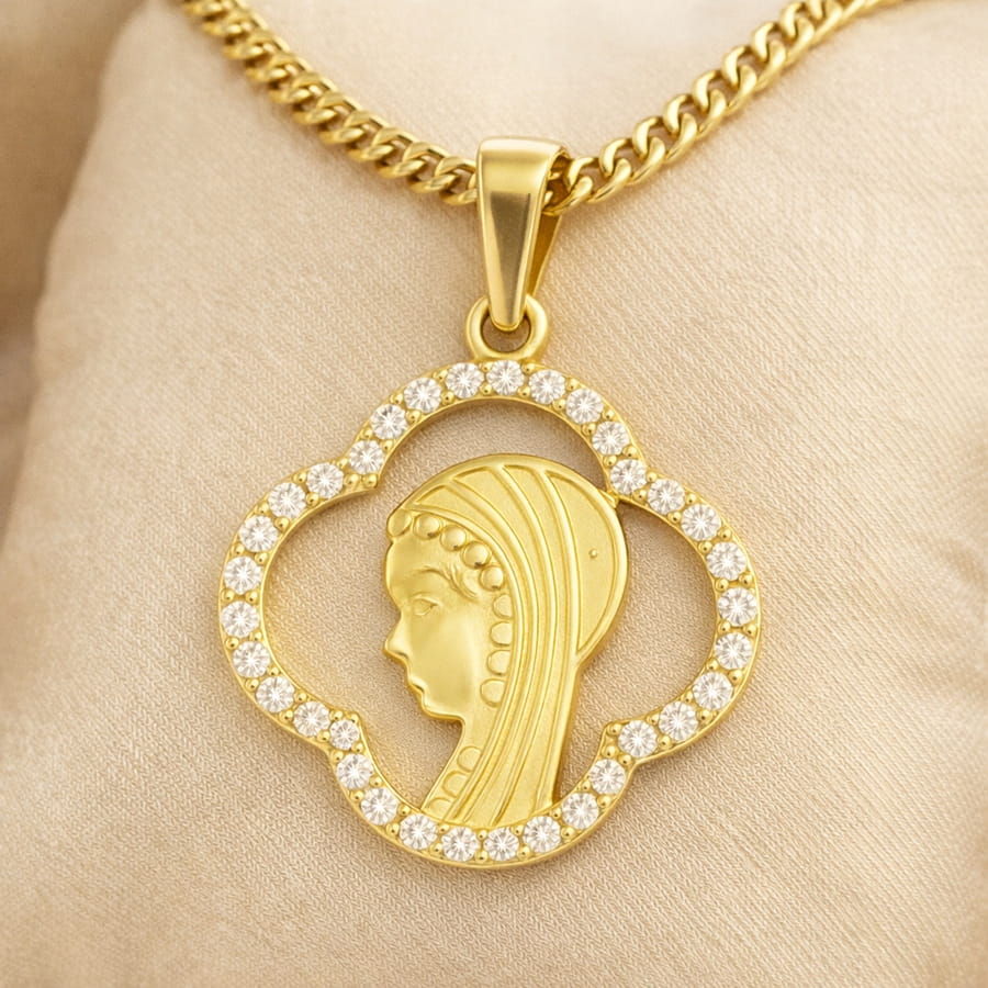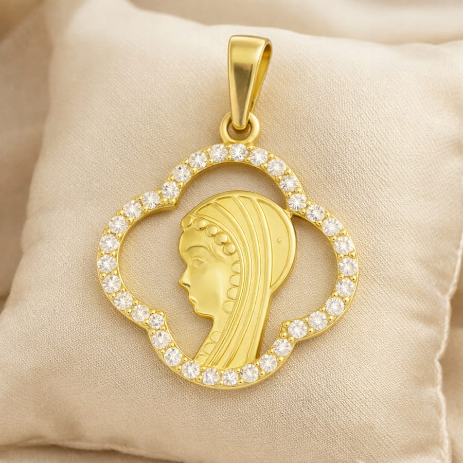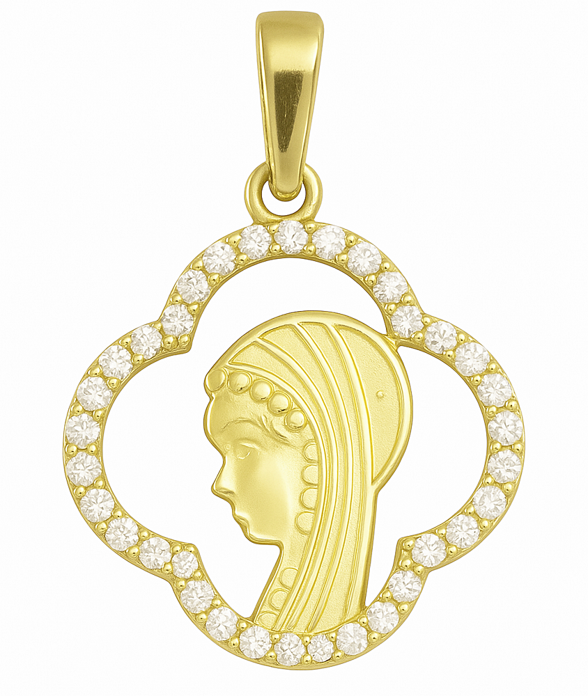 ➡️ Medalik Złoty Wizerunek Matki Boskiej z Cyrkoniami pr 585