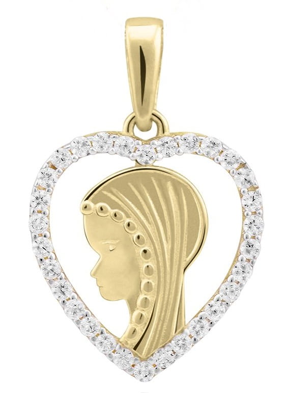 ➡️Medalik Złoty Wizerunek Matki Boskiej w Serduszku z Cyrkoniami pr 585