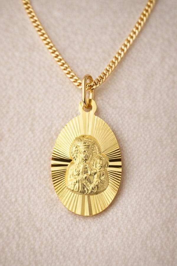 ➡️ Medalik Złoty Pełny z Matką Boską Częstochowską pr 585
