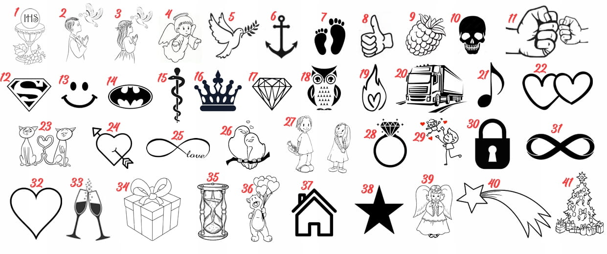 Podaj, który numer projektu wybierasz oraz dane do wpisania w miejsca oznaczone na czerwono. Aby otrzymać spersonalizowaną tabliczkę prosimy o informacje np:
