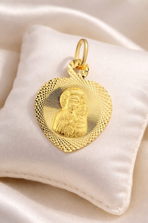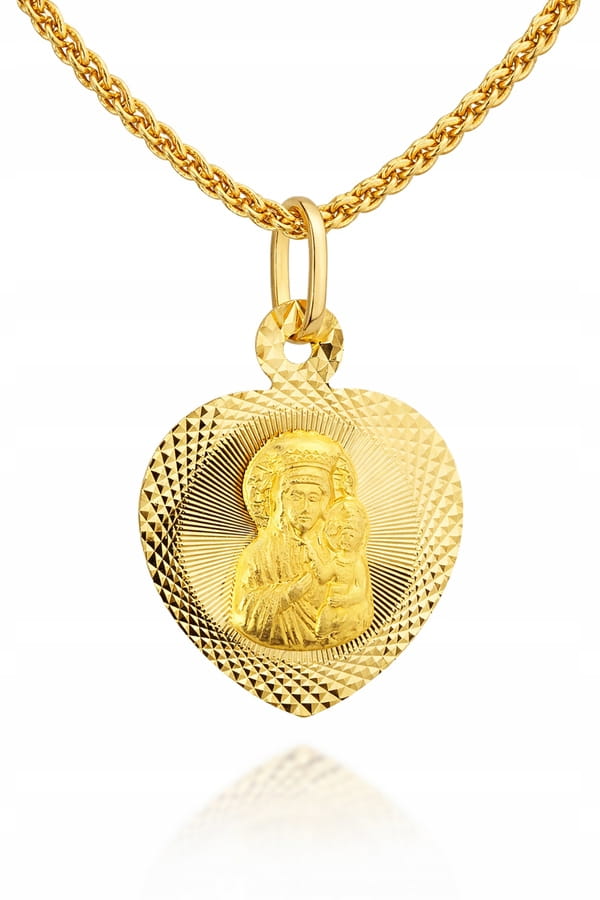 ➡️ Medalik Złoty Pełny w Sercu z Wizerunkiem Matki Boskiej Częstochowskiej pr 585