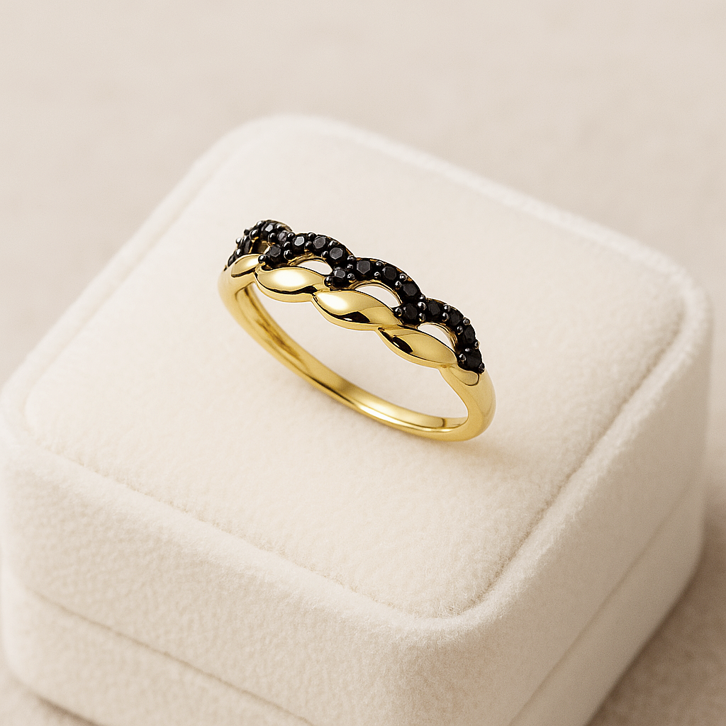 ➡️ Złoty Pierścionek z Czarnymi Kamieniami pr 585 /14 karat